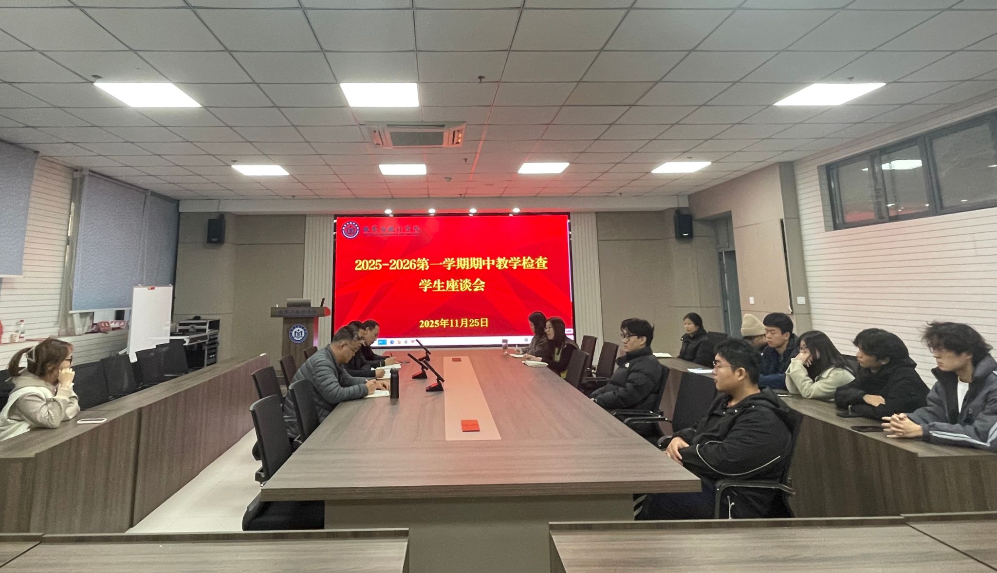会议第二阶段为教师座谈会和学生座谈会。教师座谈会上,任课教师结合自身教学实践,就当前课堂教学中普遍关注的学生考勤管理、课堂“抬头率”、学习专注度以及作业提交质量等共性难点问题进行了交流与分享,并提出改进建议。学生座谈会上,学生代表踊跃发言,如实反馈了同学们在学习过程中遇到的问题,并就课程设置、排课安排、学业规划等方面提出了建议。
