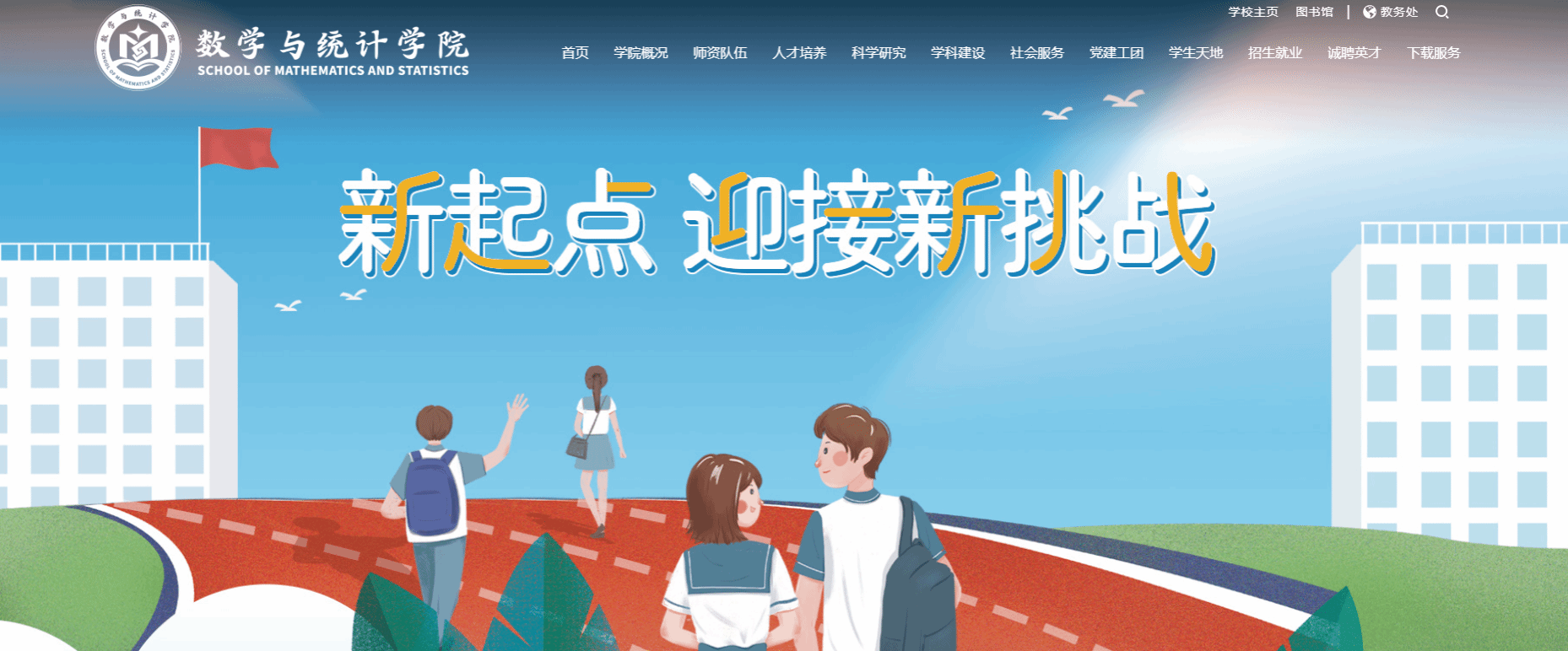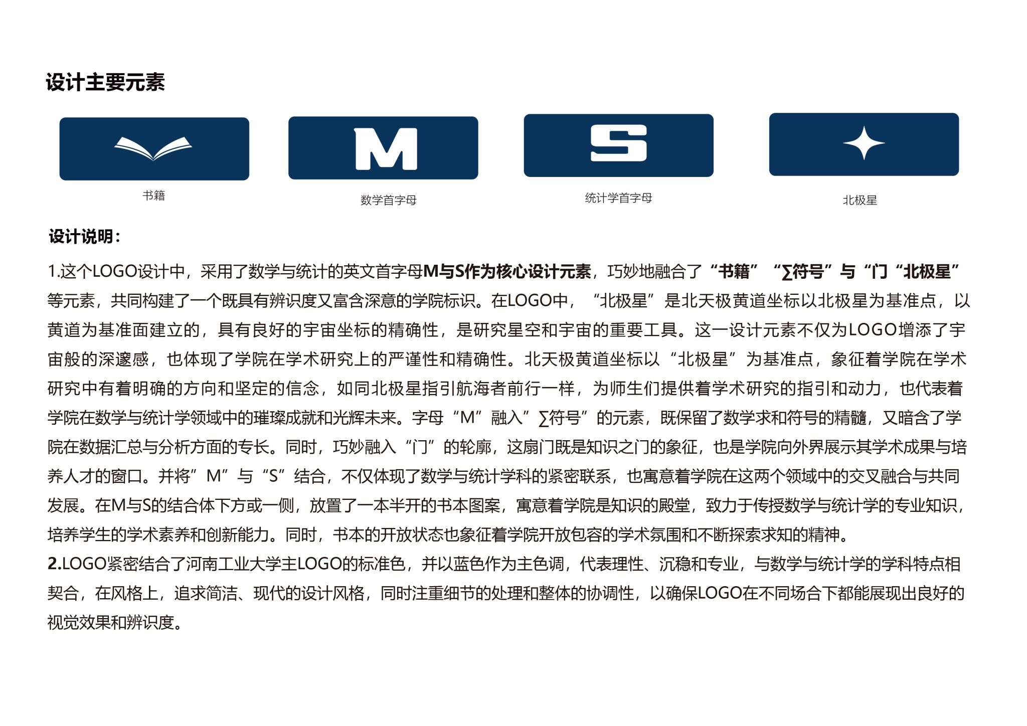 的学科特点相契合,采用数学与统计的英文首字母M与S为核心设计元素,巧妙地融合了“书籍”“符号”“门”“北极星”等元素,既有辨识度又富有深意。