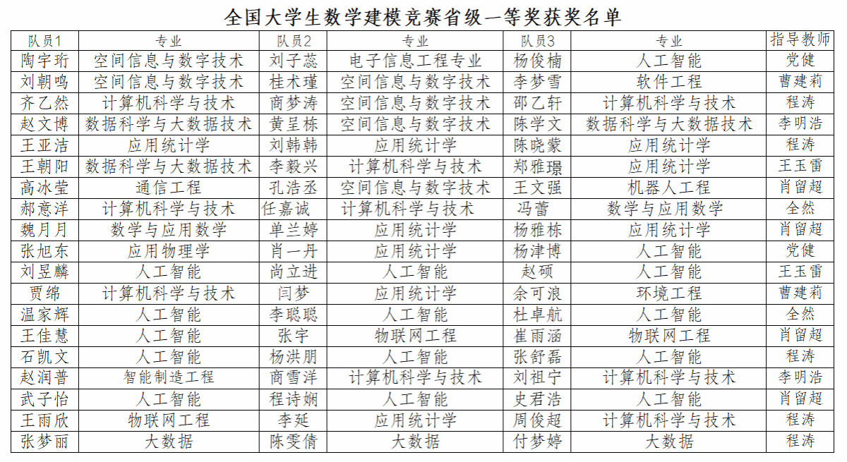 近日,2024年高教社杯全国大学生数学建模竞赛结果揭晓,我校代表队取得优秀成绩,获得河南赛区省级一等奖19项、二等奖27项、三等奖27项。
