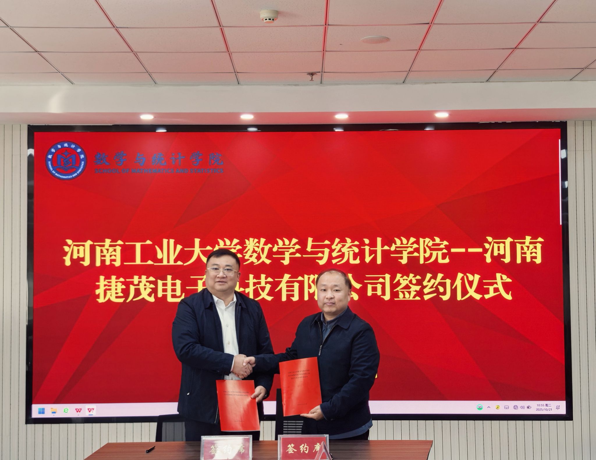 2025年10月21日,河南捷茂电子科技有限公司与足球现场赛果-足球现场直播 科教融汇教学科研基地签约仪式在惟德楼315会议室举行。河南捷茂电子科技有限公司总经理高峰、副总经理吕其艳、技术总监王念政、销售总监樊璐及技术骨干,足球现场赛果 院长谷存昌,副院长曹建莉、肖留超及相关教师代表出席仪式。会议由肖留超主持。