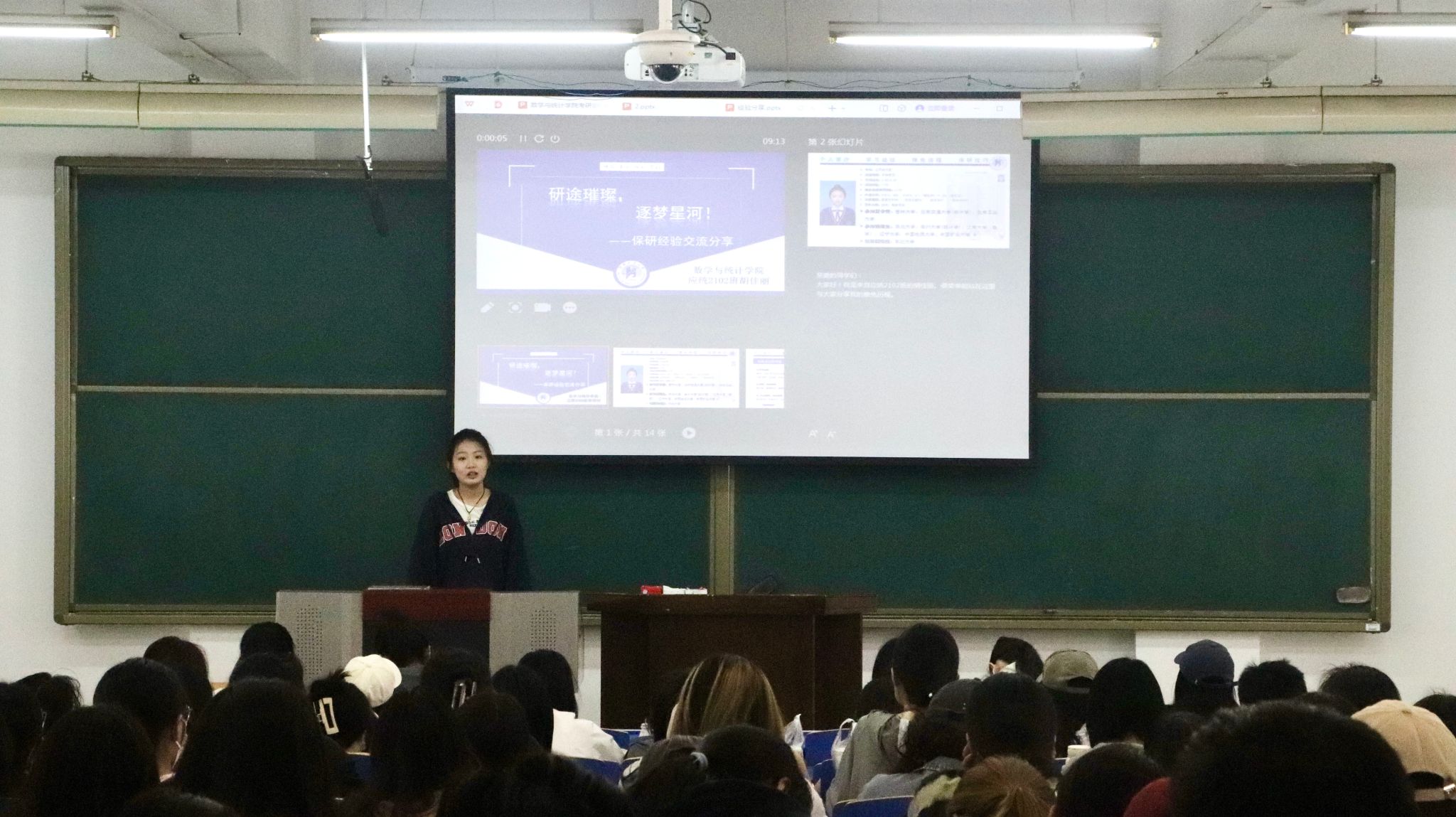 为充分发挥优秀毕业生示范引领作用,助力学生科学规划升学就业路径。5月10日,由校团委主办、足球现场赛果 承办的“青春扬帆启新程,踏浪掌舵赴云程”第351期大学生论坛在莲花街4号楼320教室举办。本次论坛邀请足球现场赛果 优秀学生代表胡佳丽、孙小朋、李悠然、陈以萱进行宣讲。足球现场赛果 党委副书记程凯、学工办主任赵洁、辅导员李鑫老师及学生代表200余人参加了本次论坛。论坛由学院团委书记刘姗主持。