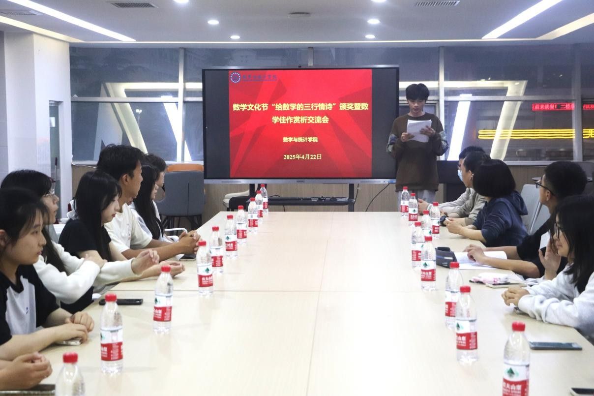 “书香数统,悦读人生”读书交流分享会暨“给数学的三行情诗”颁奖活动在德园一站式社区三楼举行。学院党委副书记程凯、各年级辅导员、学生代表参加活动。