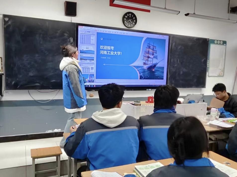 为搭建优质教育资源共享桥梁,让更多高中学子深入了解河南工业大学的办学理念、学科特色与育人成果,2026年2月8日,王若涵同学走进母校兴平市西郊高级中学,来到高三3班,进行了由河南工业大学招生工作办公室联合各学院组织开展“工大学子家乡行”返校宣讲活动。