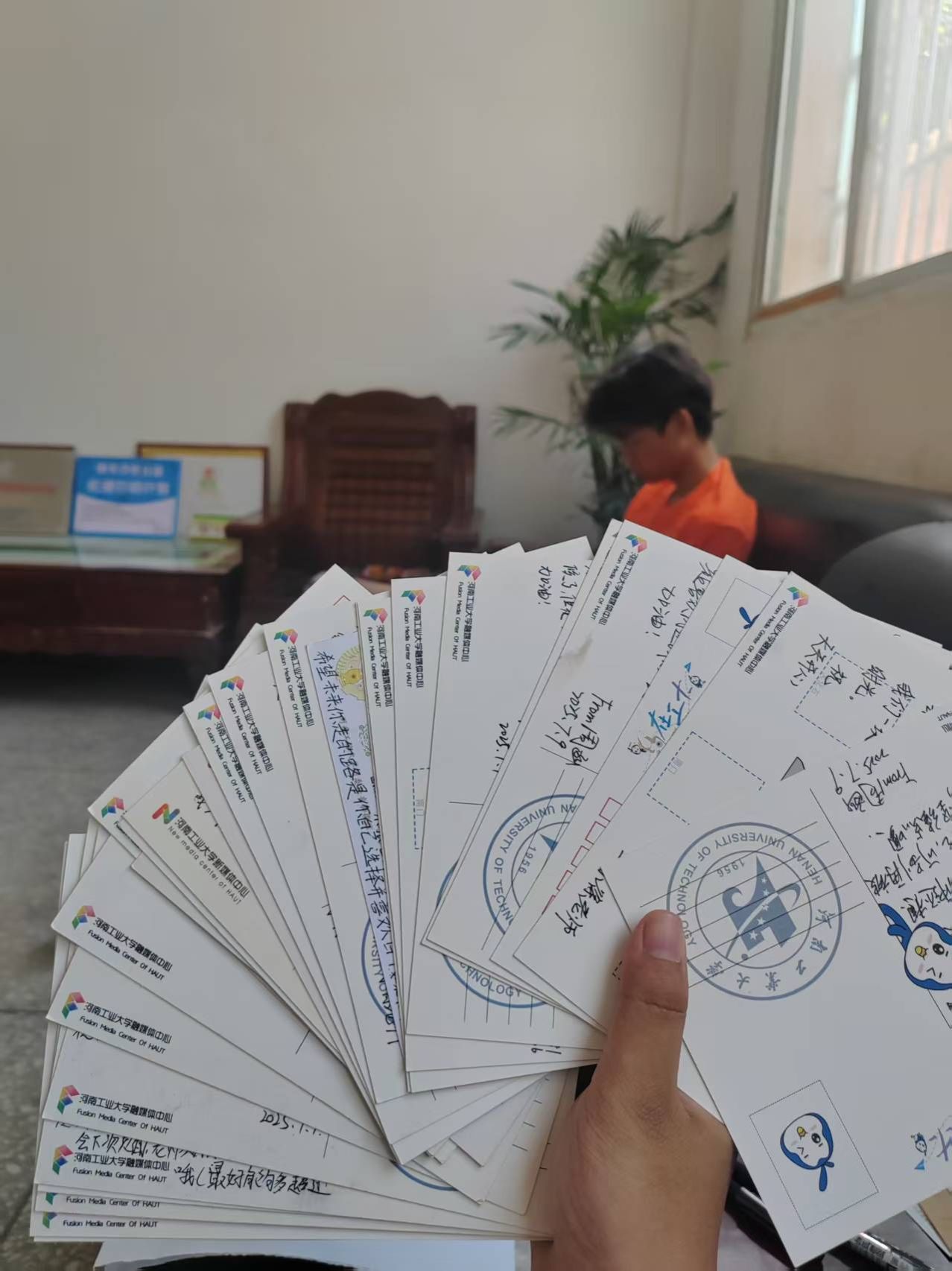 活动伊始,志愿者老师们为每一位同学精心准备了独一无二的明信片。这些明信片上,有老师们亲手绘制的卡通图案,有针对每个孩子特点写下的鼓励话语,还有对孩子们未来的美好期许。当孩子们接过明信片,看到上面属于自己的专属内容时,眼中闪烁着惊喜与感动的光芒。有的孩子小心翼翼地将明信片捧在手中,反复阅读上面的文字;有的孩子则兴奋地与身边的小伙伴分享自己的明信片,脸上洋溢着自豪的笑容。这份小小的礼物,承载着老师们满满的爱与关怀,成为了连接师生情感的珍贵纽带。