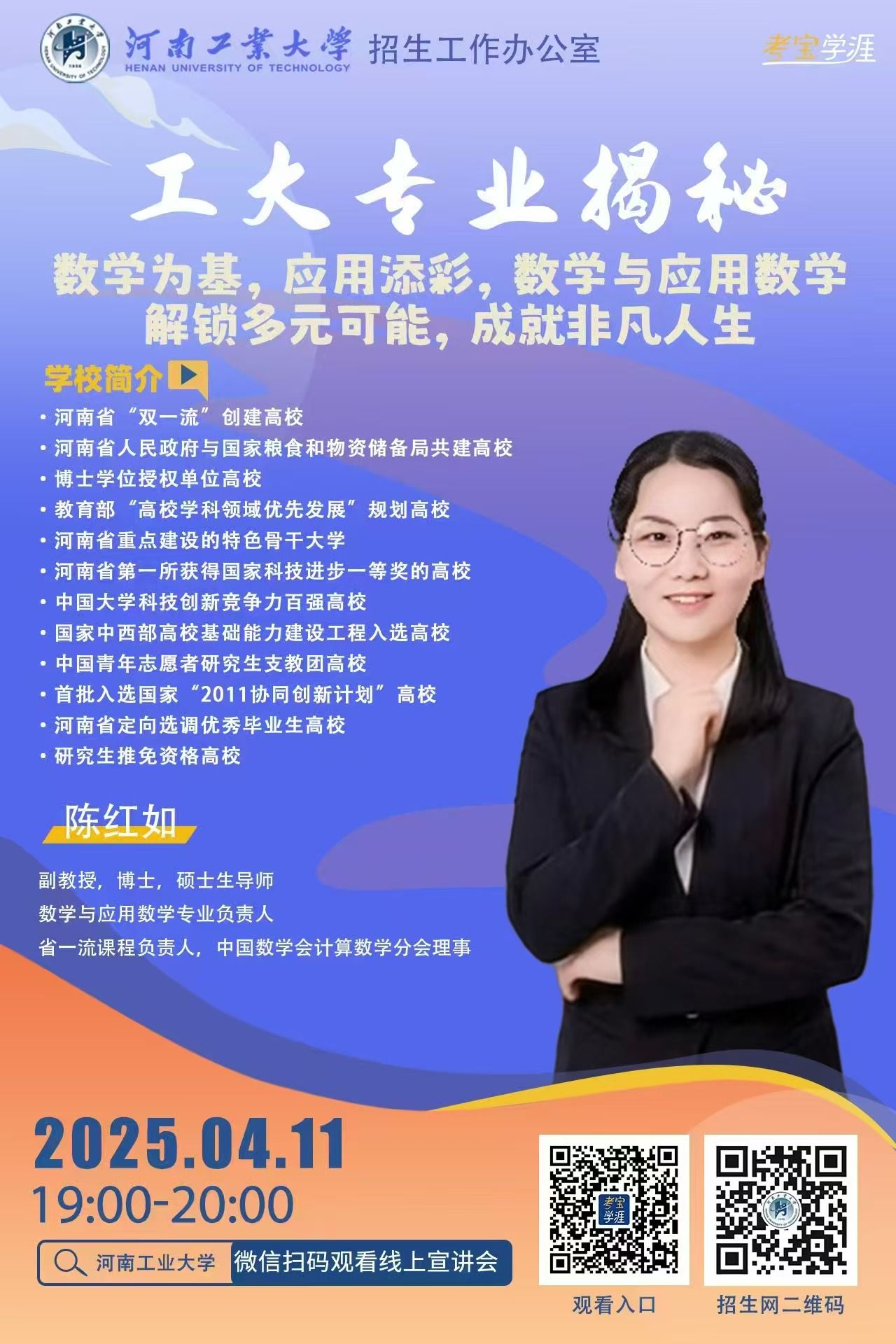 请微信扫码“观看入口”观看线上宣讲会,揭秘足球现场赛果 数学与应用数学本科专业